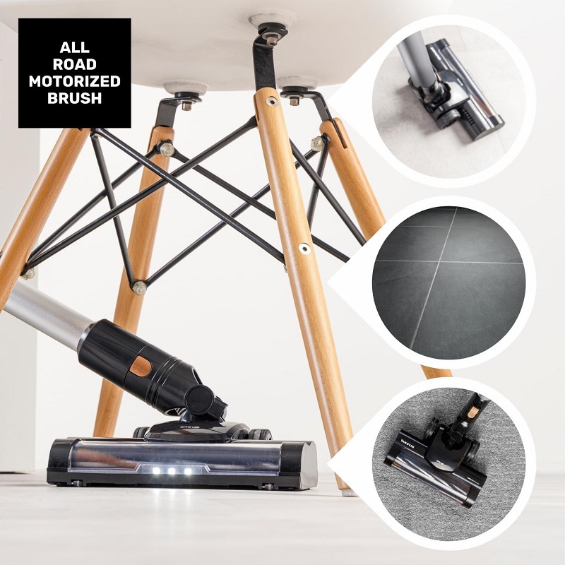 Le Homeland Ultimate combine une puissance de 150W et 10 000 Pa d'aspiration avec une batterie amovible de 29,6V, offrant jusqu'à 70 minutes d'autonomie en mode ECO, équipé du système de filtre Triple Advanced Filtration (HEPA, cyclonique et mesh) et d'un réservoir de 600 ml, garantissant une élimination efficace des particules fines et un nettoyage plus propre. Comprend deux accessoires interchangeables, o ALL ROAD et o FUZZY. Conçu pour offrir une efficacité et une praticité maximales dans tous vos nettoyages.