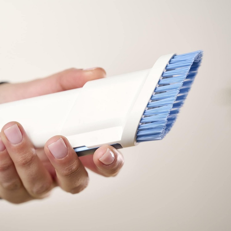 Les particules sont captées dans une première phase par le filtre HEPA et dans une seconde phase par un cyclone en acier inoxydable. Les deux filtres sont amovibles et lavables, piles au lithium et charge rapide, les batteries 11,1V sont au lithium, de longue durée et sans effet mémoire (elles ne se corrompent pas avec le temps), il a une autonomie de 15 minutes et se recharge avec un câble USB-C et un adaptateur USB, recharge complète en 3 heures