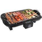 Barbecue à gaz avec grille nervurée avec finition inox, disposition en pierre volcanique.