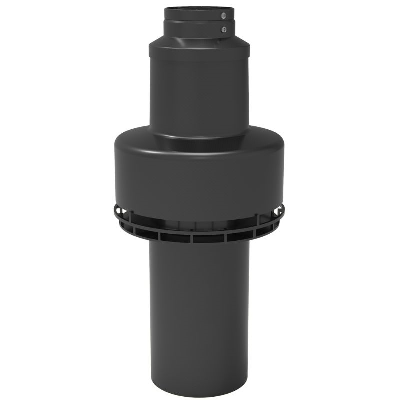 Terminal coaxial vertical court en polypropylène Fig, diamètre 60/100 mm, noir, pour appareils à condensation, installation intérieure individuelle et collective. Terminal coaxial vertical court