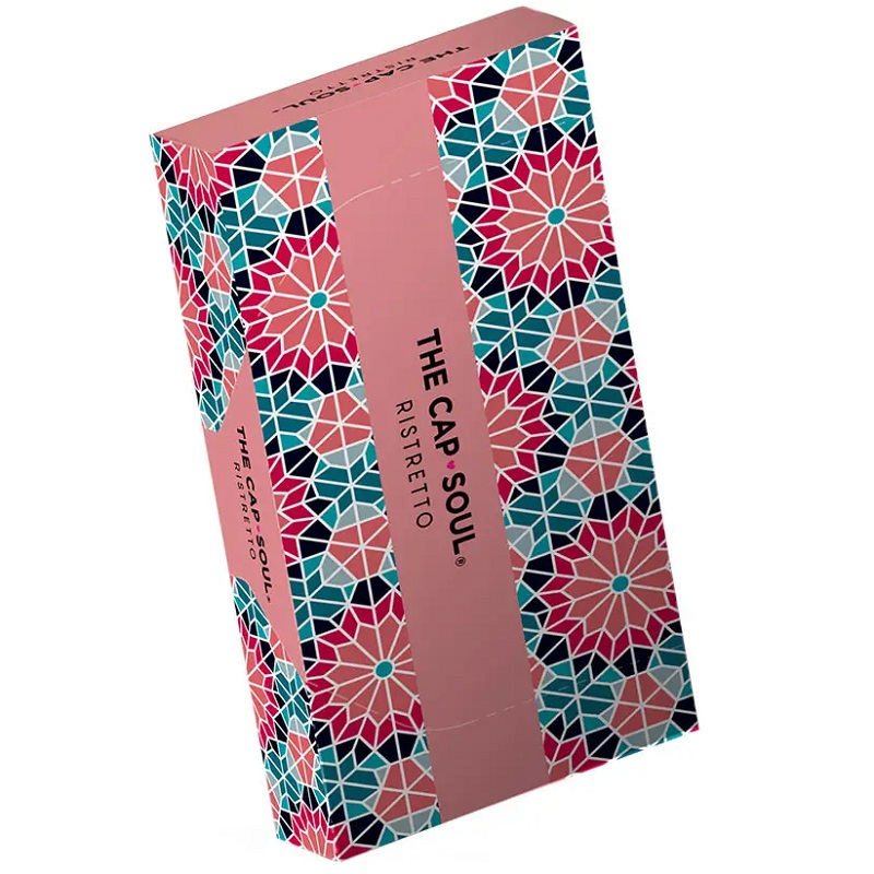 Capsules de café ristretto de The Capsou, mélange de cafés Arabica d'Amérique du Sud avec une touche de Robusta qui ajoute de l'intensité et du corps, ainsi que des notes de chocolat noir qui apparaissent en douceur