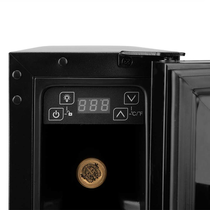 Son système de refroidissement par compresseur garantit un refroidissement rapide et stable, maintenant une température constante même par temps chaud. Grâce à son écran LCD numérique et son panneau de commande tactile, l'utilisateur peut régler la température entre 5 °C et 20 °C, l'adaptant ainsi aux vins rouges, blancs ou effervescents. De plus, l'affichage de la température en °C ou °F offre un confort et une précision accrus.