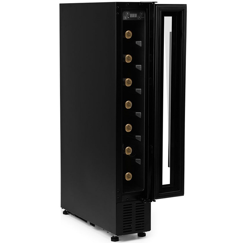 La cave à vin à compresseur VCE 700 est la solution idéale pour les amateurs de vin souhaitant conserver leur collection dans un espace réduit, sans compromis sur la qualité ni sur la performance. D'une capacité de 7 bouteilles, ce modèle s'intègre harmonieusement dans toutes les cuisines et tous les placards grâce à son design encastrable, offrant une esthétique à la fois élégante et fonctionnelle.