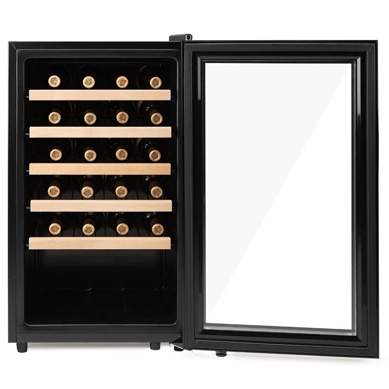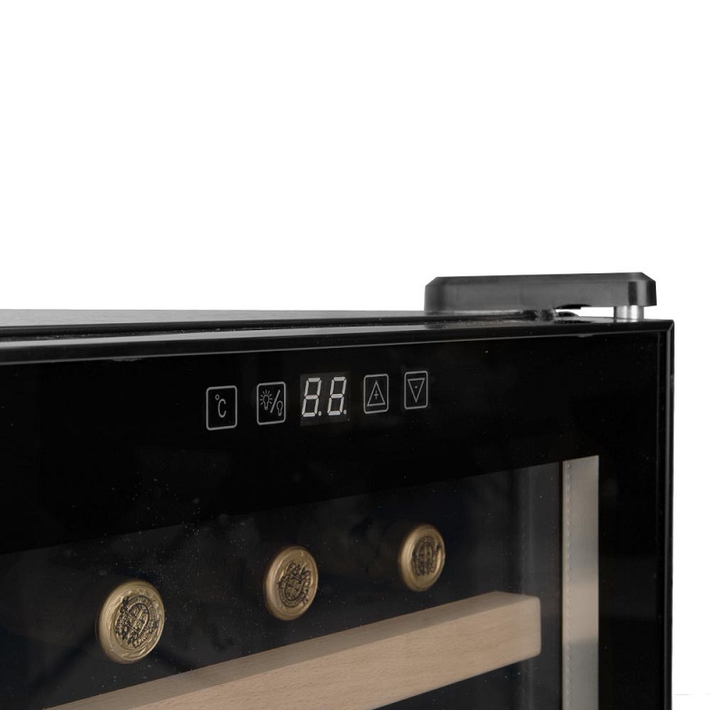 Grâce à son système de réfrigération par compresseur, la cave à vin garantit un refroidissement rapide et stable, quelle que soit la température ambiante. Contrairement à d'autres systèmes, le compresseur assure un débit constant, idéal pour les vins rouges, blancs ou effervescents. De plus, son thermostat électronique permet un réglage précis de la température entre 5 °C et 20 °C, avec affichage en °C et °F sur son écran LCD numérique et son panneau tactile intuitif.