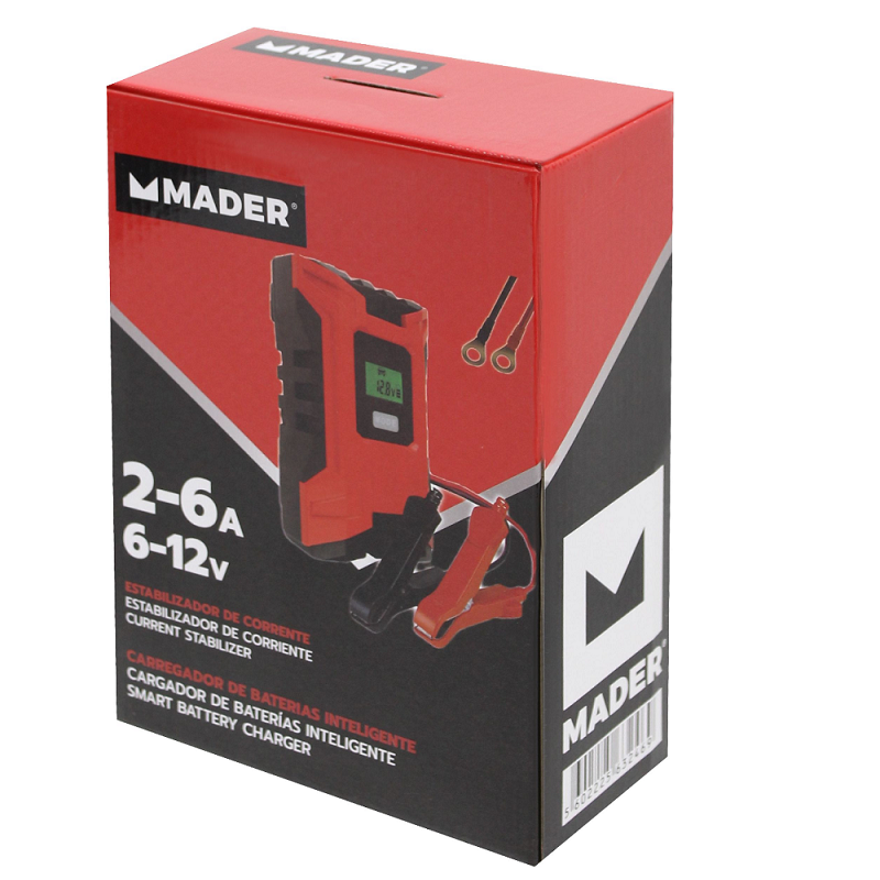 Chargeur batterie 2-4A 6-12V MADER compatible avec les batteries acide, AGM ou plomb. Doté d'une fonction mainteneur de charge. Indice de protection étanchéité (poussière et liquides):IP65