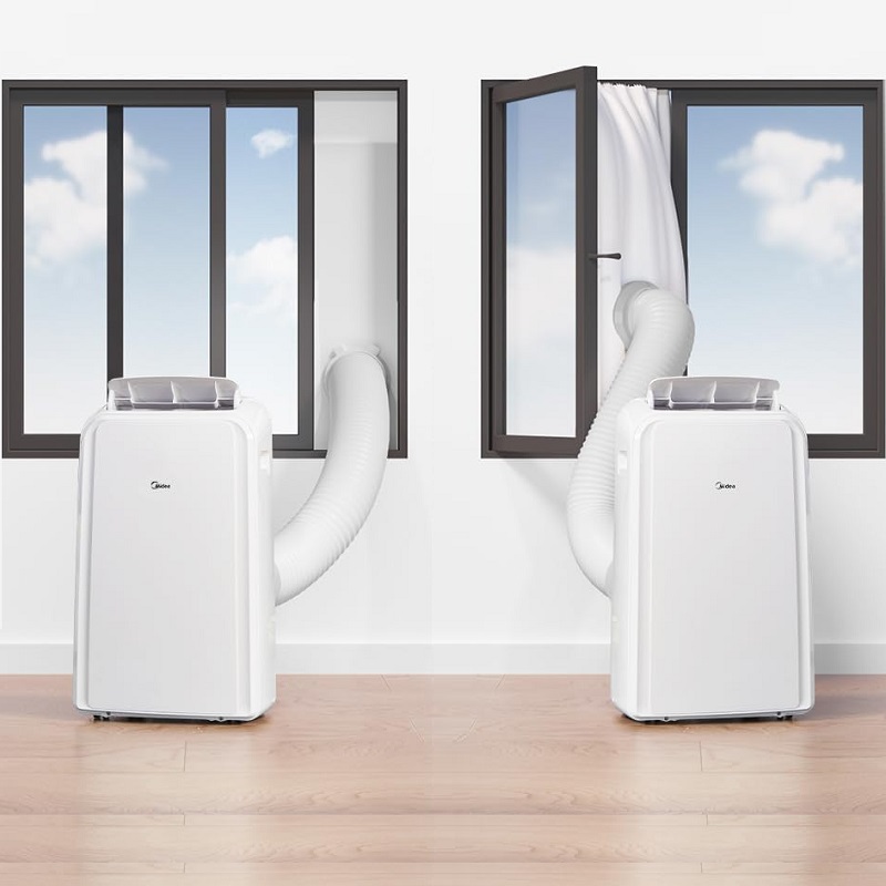 Climatiseur portable MIDEA MPPDB-12CRN7-QB6 3,5 kW. Fonctionnement en mode refroidissement uniquement. Réfrigérant R290. Kit de fenêtre inclus.