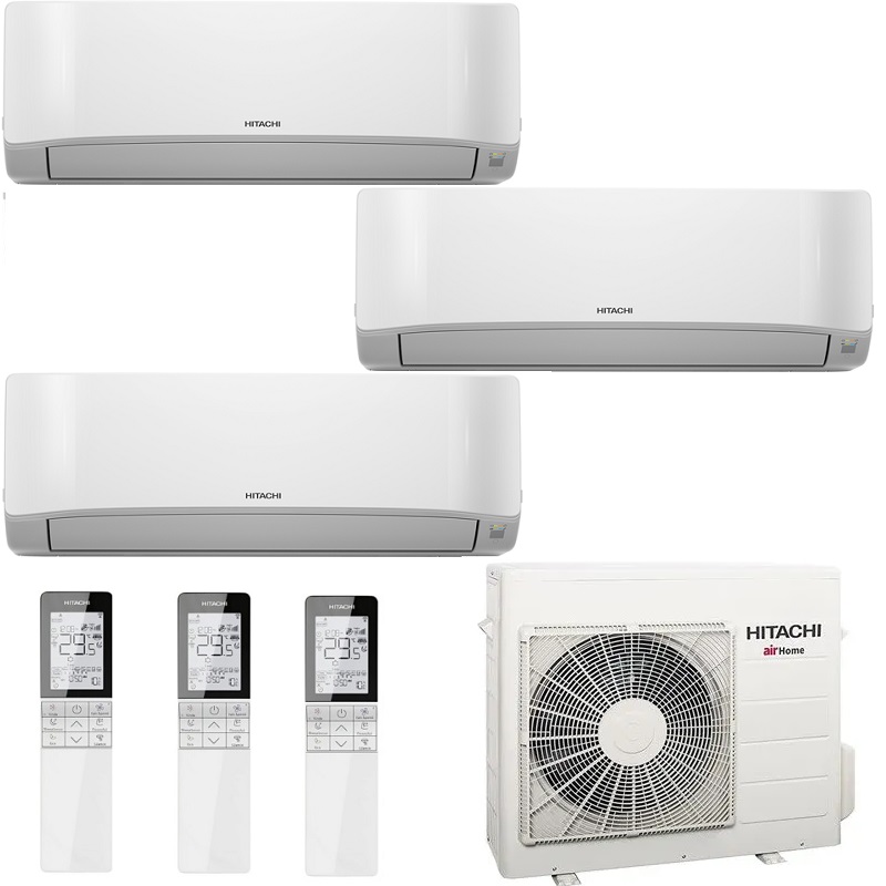 Climatiseur Tri split Hitachi AirHome 400 RAM-G68N3HAE 6.8k, 25+25+35 WiFi RAK-DJ25RHAE + RAK-DJ35RHAE