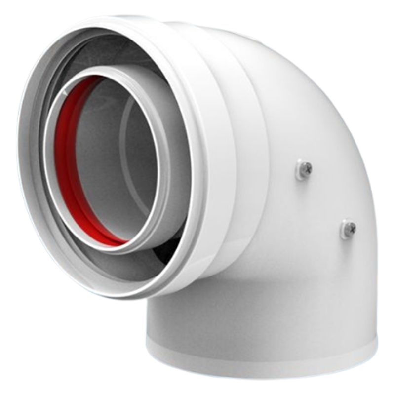 Le coude coaxial à 90° Fig Ø 60/100 mm pour l'évacuation des fumées des chaudières à condensation est conçu pour les chaudières à condensation équipées d'un système coaxial Ø 60/100 mm. Il permet le raccordement du système d'évacuation des fumées en cas de changement de direction, tout en préservant l'efficacité et la sécurité de l'installation.