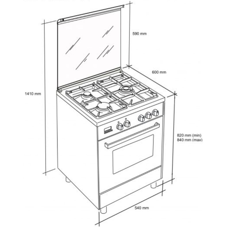 Cuisine Meireles E542X Naturelle 55 cm. 3 feux + 1 électrique. Four électrique