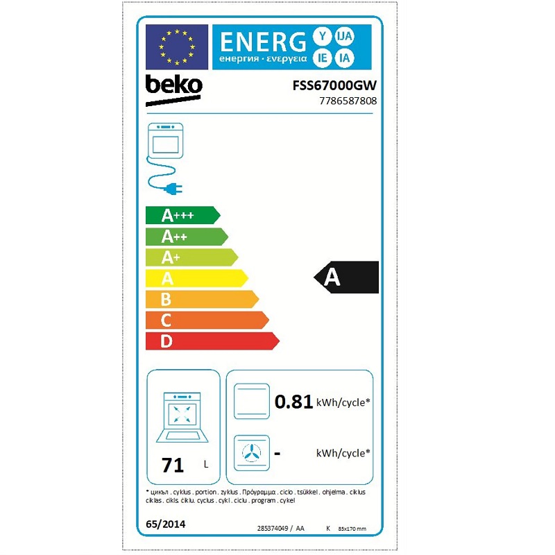 Cuisinière vitrocéramique Beko FBS67000WD 60 cm. 4 zones de cuisson. Four électrique.