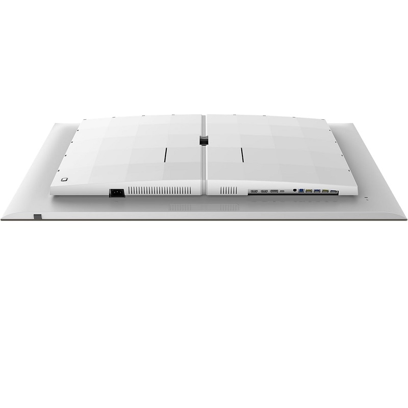 Ce moniteur offre aussi une ergonomie soignée, avec réglage en hauteur et possibilité de rotation, facilitant son adaptation à divers espaces et préférences d’utilisation. Son design combine une finition en blanc et noir mat, apportant un style élégant et moderne adapté aux environnements professionnels comme domestiques. Parmi ses connexions, on trouve un USB 3.2 Gen 1 pour périphériques et transfert rapide de données, tandis que son support de montage VESA le rend compatible avec des configurations personnalisées sur bureaux ou supports.