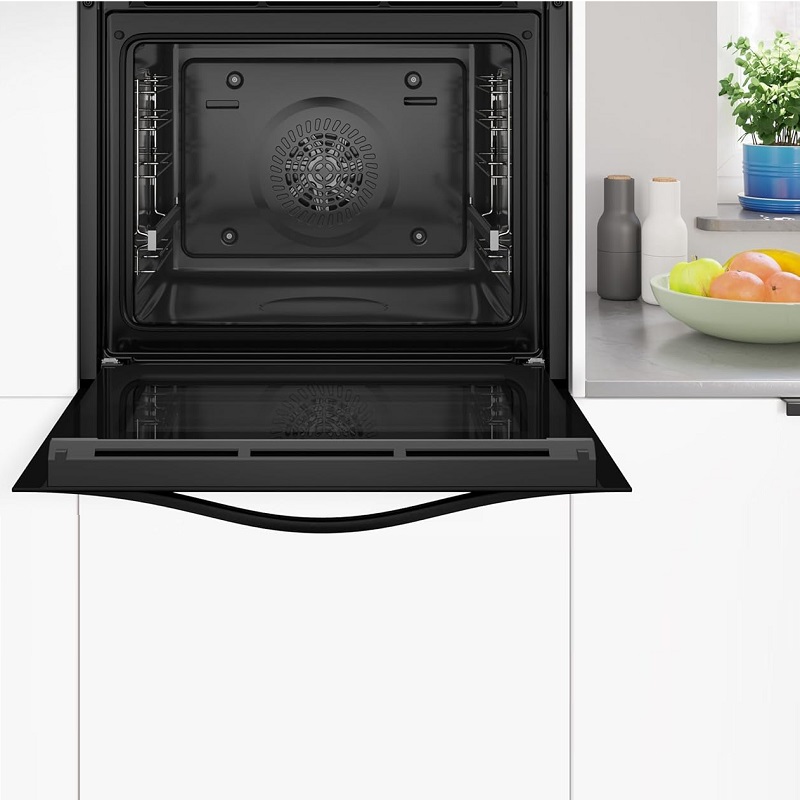 La technologie de chaleur tournante pour une répartition uniforme assure des résultats réguliers sur l'ensemble des niveaux. Avec 71 l de capacité, la cavité unique accueille des plats familiaux sans compromis. Le format encastrable 59,5 × 59,4 × 55 cm convient aux colonnes et meubles standards, avec une profondeur d'encastrement de 55 cm pour une mise en place directe. Le rail télescopique facilite l'insertion et le retrait des plats en limitant les risques de contact avec la chaleur. L'éclairage intérieur améliore la visibilité pendant la cuisson et évite d'ouvrir la porte inutilement.