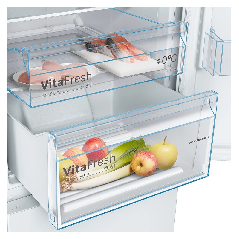 Le système VitaFresh offre un environnement idéal pour la conservation des aliments frais grâce à une régulation précise de la température. Viandes et poissons restent frais plus longtemps à une température proche de 0 °C. Fruits et légumes bénéficient d'une régulation thermique optimale. Plus de plaisir gustatif, moins de gaspillage.