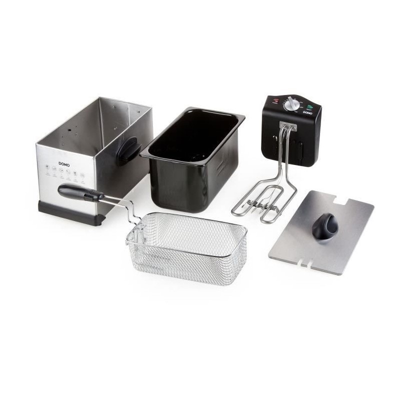 La friteuse développe 3000 W de puissance électrique pour amener l'huile de friture à ébullition rapidement, grâce au thermostat, adaptez la température de l'huile, de 60°C à 190°C, au type d'aliment et au résultat souhaité, frites croustillantes ou moelleuses, faites votre choix facilement avec la large molette installée sur le panneau de contrôle, en outre, deux indicateurs lumineux sont présents pour vous offrir une lisibilité claire sur l'état de l'appareil