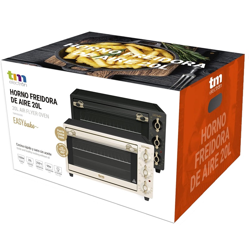 Ce four Tm Electron nous permet de frire, rôtir, cuire, griller ou simplement réchauffer, avec un ventilateur turbo à double vitesse et quatre éléments chauffants, nous pouvons tout réaliser, des frites aux lasagnes.