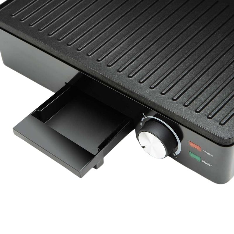 Avec une surface de cuisson de 23 x 14,5 cm par plaque, vous disposerez d'un espace généreux pour vos repas quotidiens. Et pour un nettoyage facile, il est équipé d'un bac récupérateur de graisses pratique qui recueille les jus et les graisses, simplifiant l'entretien et préservant la propreté de votre plan de travail.