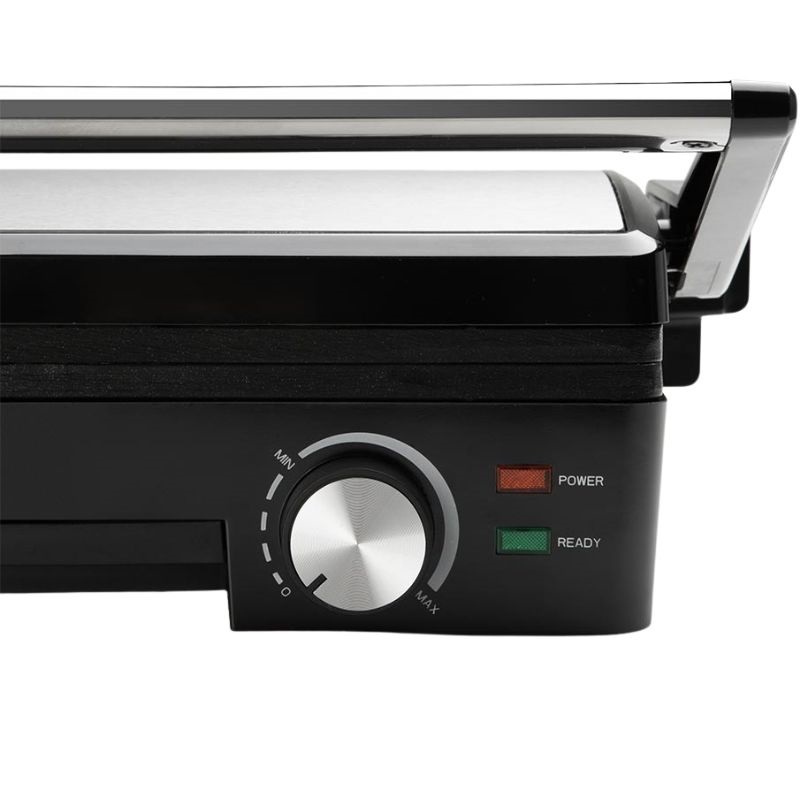 L'un de ses principaux atouts est sa grande surface de cuisson dotée de deux plaques rabattables à 180°. Vous pouvez ainsi l'utiliser comme un grill traditionnel fermé pour une cuisson uniforme des deux côtés (idéal pour les sandwichs ou les steaks), ou l'ouvrir complètement pour doubler la surface de cuisson et l'utiliser comme une plancha. Parfait pour préparer plusieurs portions à la fois ou pour griller de grosses pièces de viande.