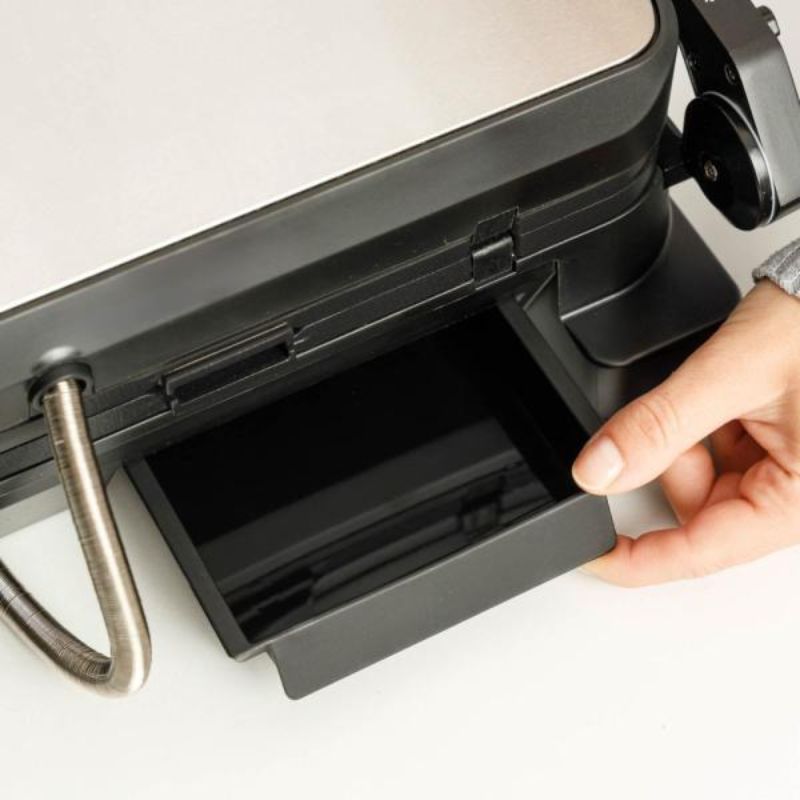 Bac récupérateur de graisse amovible : Pour une cuisson plus propre et plus saine, en éliminant l'excès de graisse. Protection thermique de sécurité : Empêche la surchauffe et garantit une utilisation en toute sécurité. Verrou de plaque de cuisson pour rangement vertical : prend très peu de place et se range facilement dans n’importe quel placard ou sur un plan de travail.