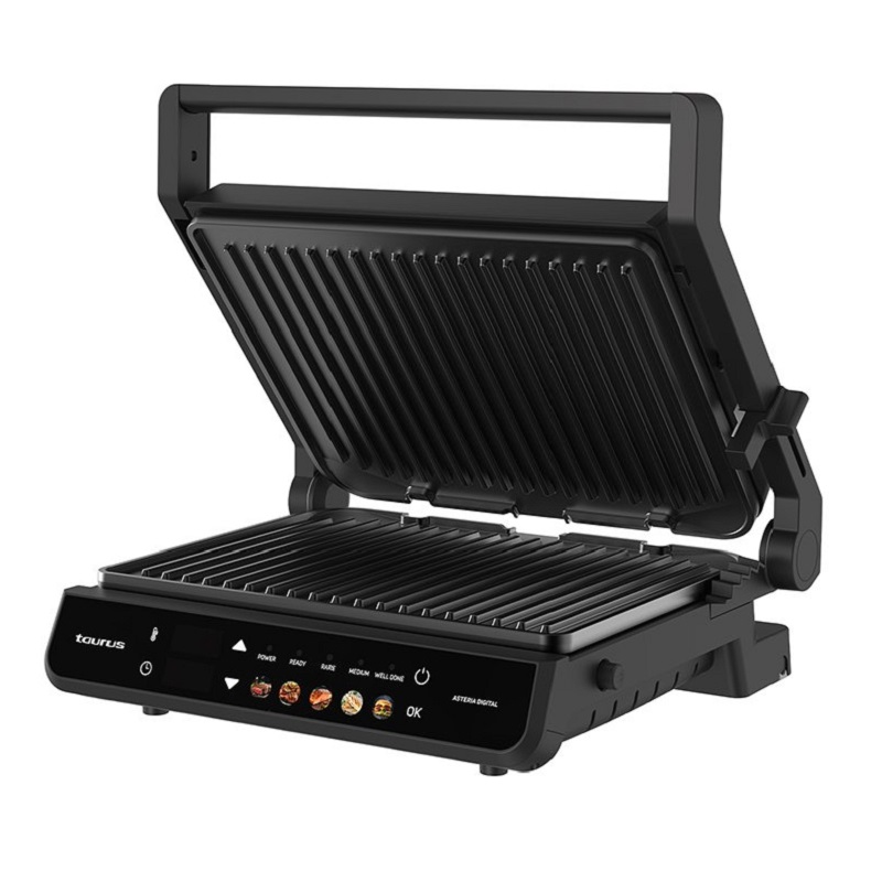 Écran couleur numérique avec 5 programmes préréglés et 3 niveaux de brunissage : Cuisson facile et intuitive, pour des résultats toujours parfaits, de saignant à bien doré.