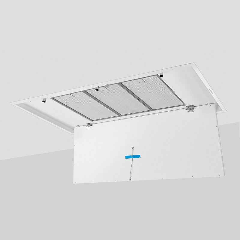 Être installée dans des faux plafonds, il dispose d'un moteur complètement silencieux, ainsi que d'un éclairage LED et d'une télécommande.