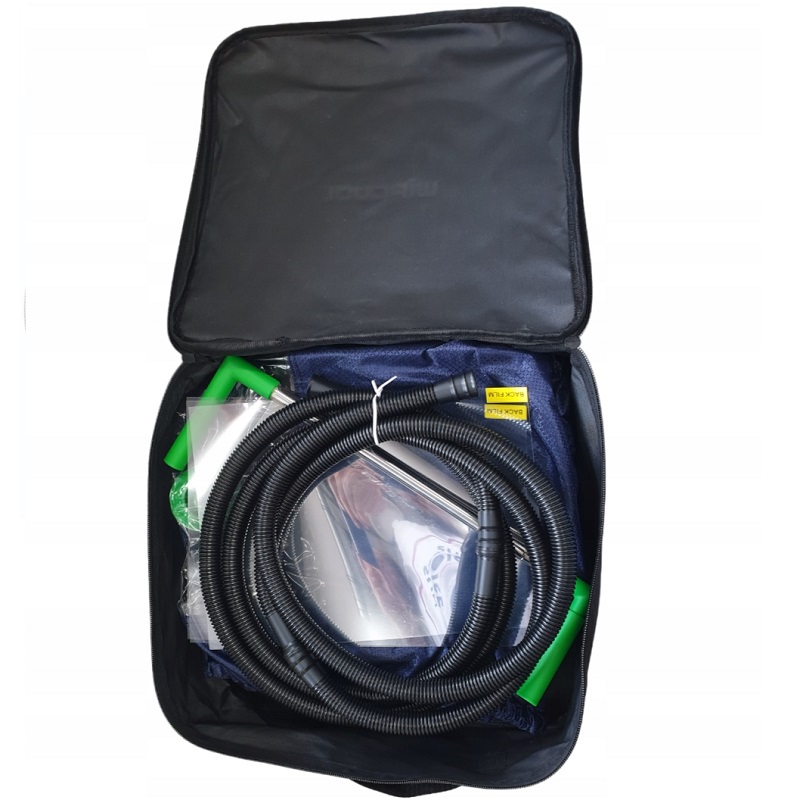 Vous maintenez ainsi plus facilement un environnement de travail propre et sûr. Le sac épouse parfaitement la forme de l'appareil à nettoyer, et le tuyau à l'avant ainsi que la face avant transparente permettent un accès facile à la buse du pistolet. Vous pouvez ainsi atteindre tous les recoins du climatiseur sans ouvrir le sac.