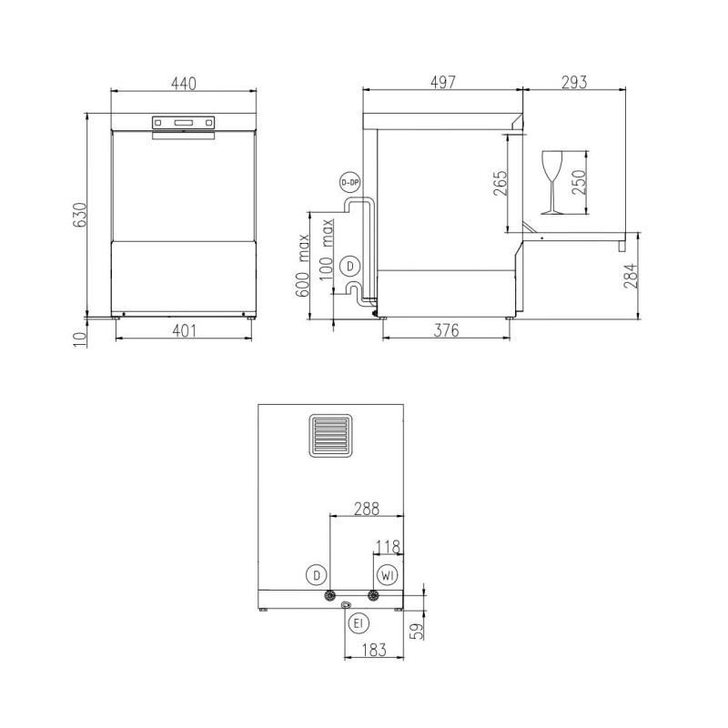 Lave-vaisselle industriel Kastel KSF35ESIPA Panier 35x35, hauteur maxi 250 mm