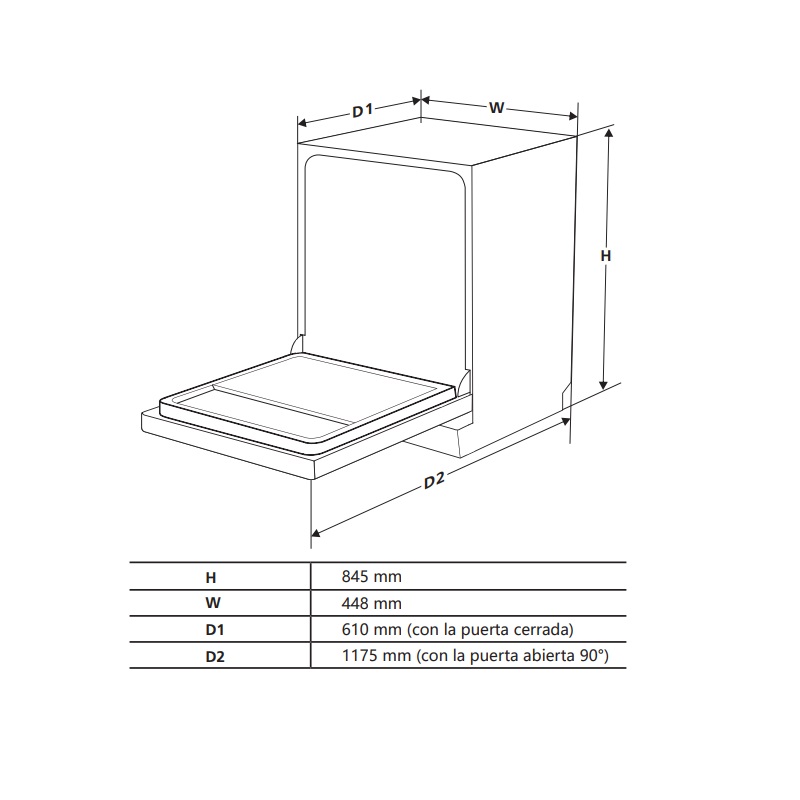 Dimensions (H x L x P) : 845 x 448 x 610 mm
