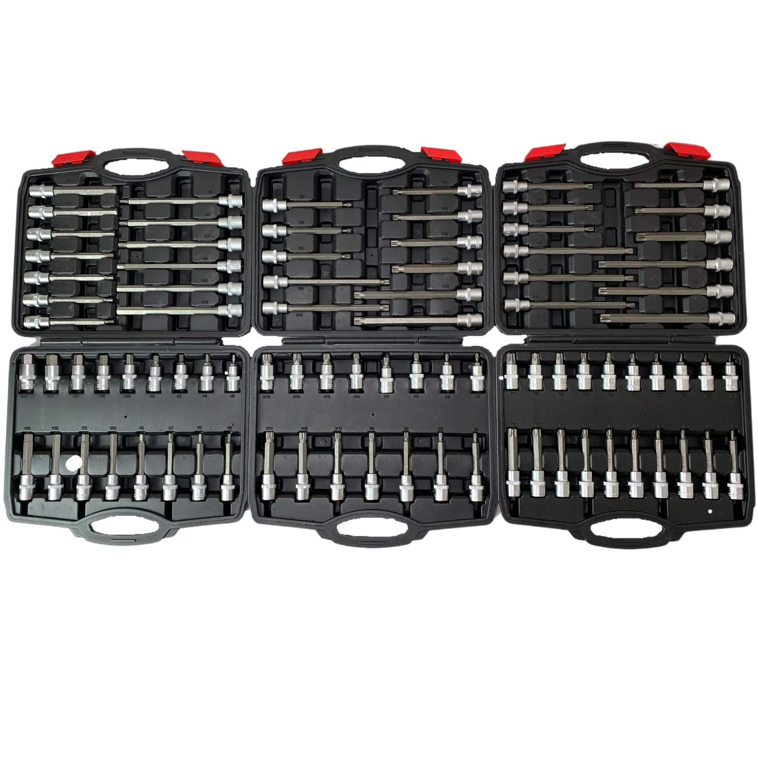 Le jeu de 88 pièces comprend (13) douilles en étoile externes, (15) douilles en étoile, (15) douilles en étoile longues, (16) douilles hexagonales métriques, (7) douilles hexagonales longues métriques, (15) douilles hexagonales SAE, (7) douilles hexagonales longues SAE.