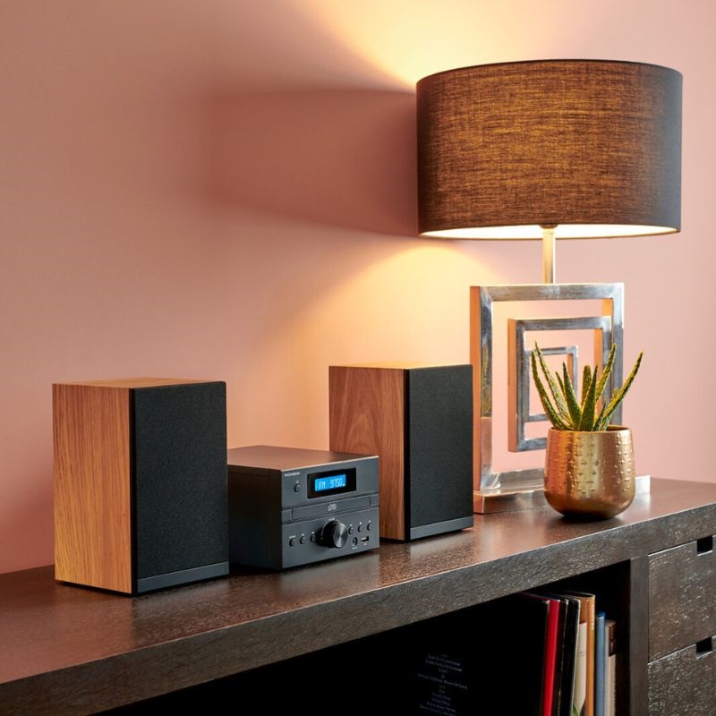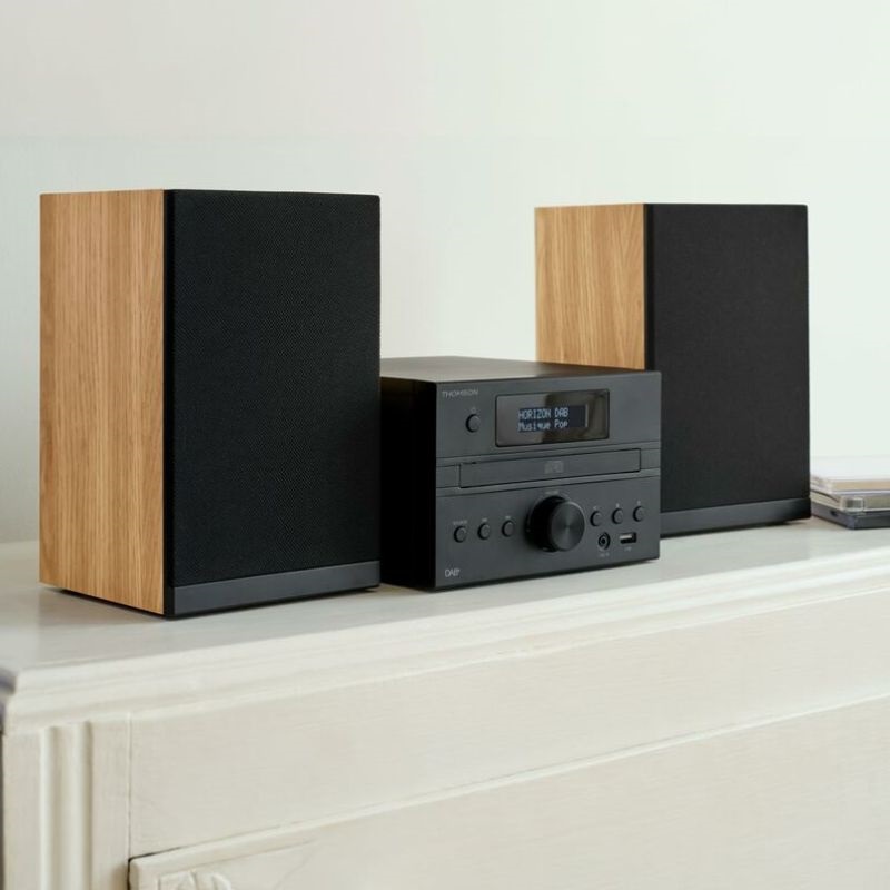 La microchaîne musicale Thomson allie fonctionnalité et style dans un design intégrant deux tons principaux, noir et bois, offrant une finition élégante et adaptable à différents espaces de la maison. Cette microchaîne dispose d’une connectivité sans fil via Bluetooth, facilitant la lecture de musique depuis des appareils compatibles sans câbles.