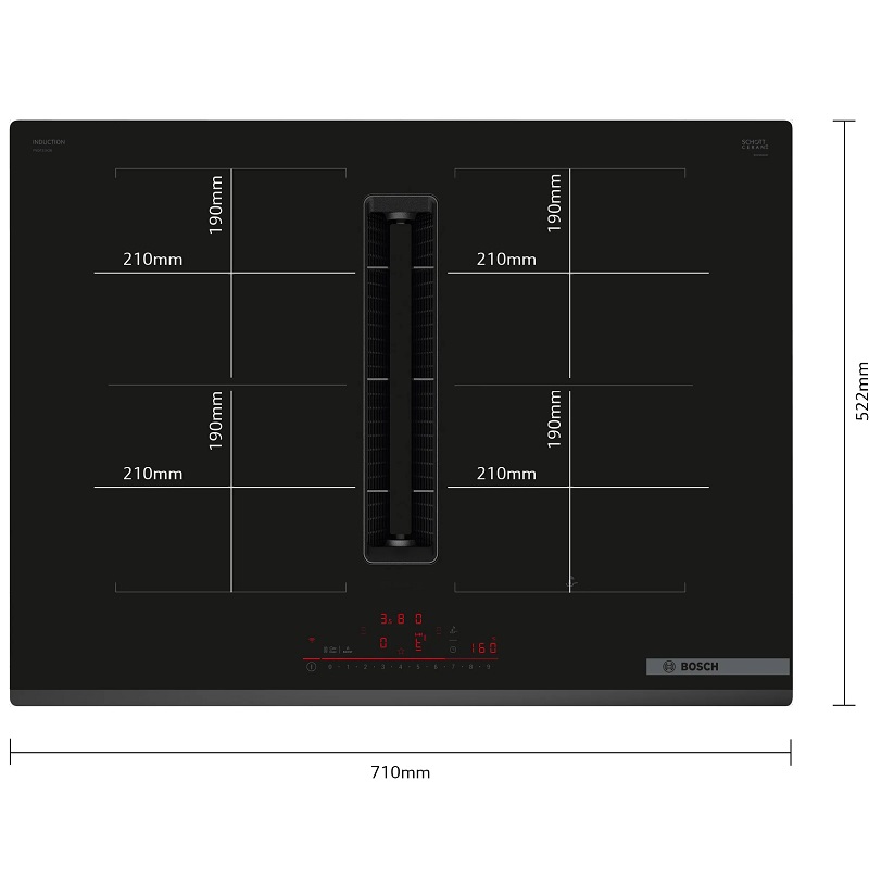 Plaque à induction Bosch PVQ731H26E, 70 cm. 595 m³/h. 4 zones de cuisson