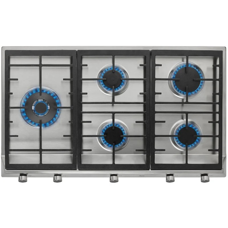 5 brûleurs gaz (3 semi-rapides 1,75 kW + rapide 3,00 kW + double couronne 4,00 kW)