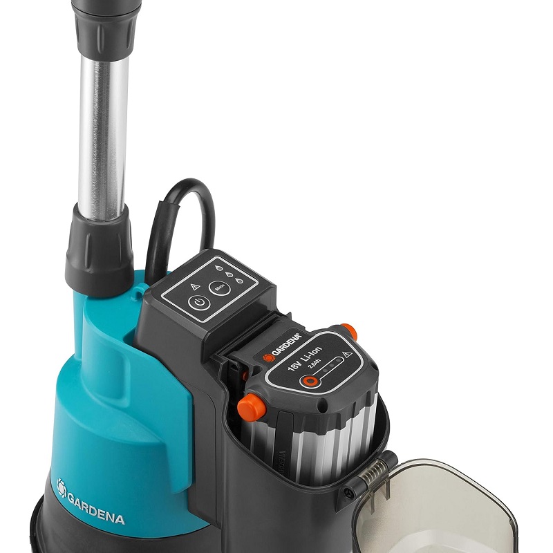 La pompe sans fil fonctionne avec une pression maximale de 2 bars, trois niveaux de puissance sont disponibles et le débit d’eau peut être réglé individuellement via la vanne de régulation. Le débit maximal est de 2 000 l/h.