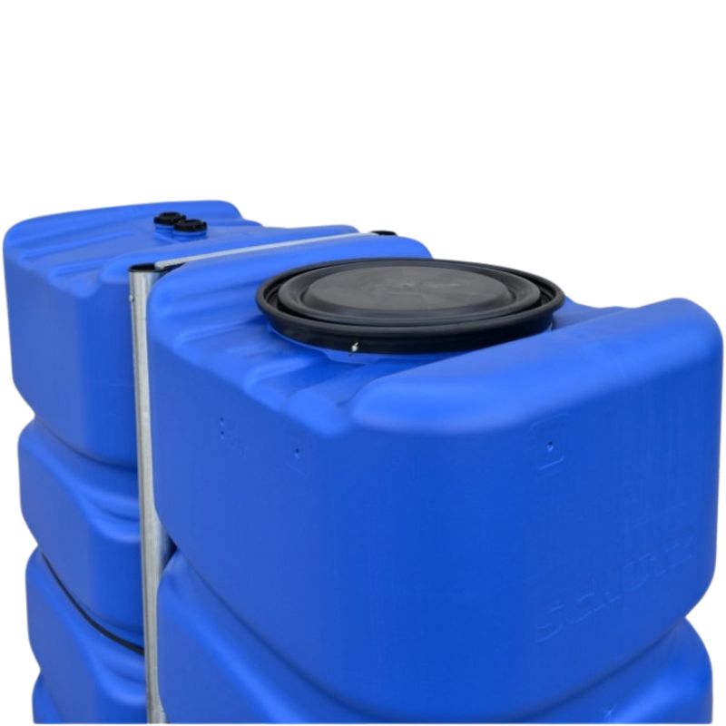 Fabriqué en polyéthylène haute densité bleu ou gris pour prévenir la prolifération d'algues tout en préservant les propriétés organoleptiques de l'eau (couleur, odeur et goût), ils sont dotés d'une sortie de 2" en bas, permettant le raccordement de pompes ou de kits de raccordement.