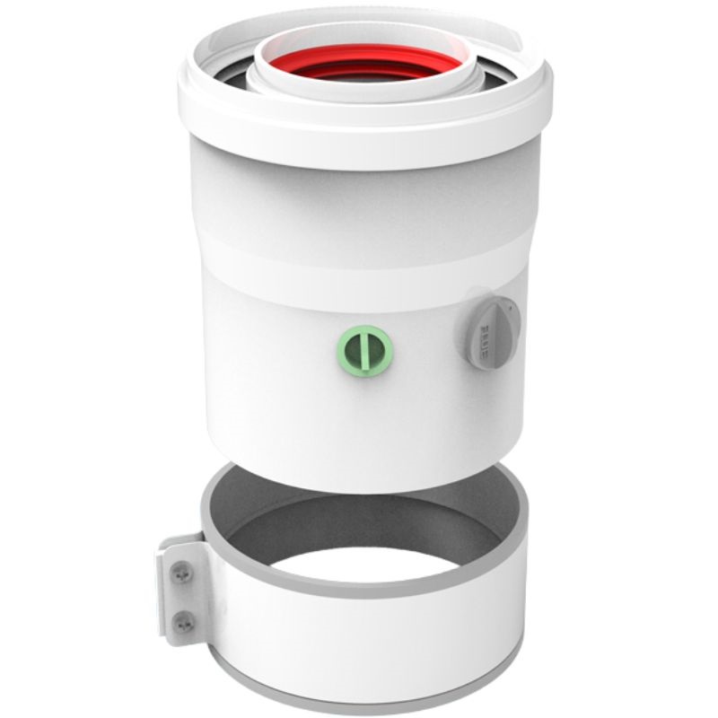 Sortie verticale FIG Ø 60/100 mm, pour condensation. Acier / PP blanc