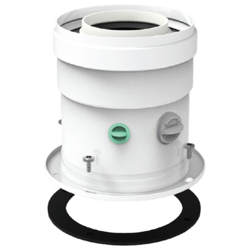 Sortie verticale FIG Ø 60/100 mm, pour condensation. Acier / PP blanc