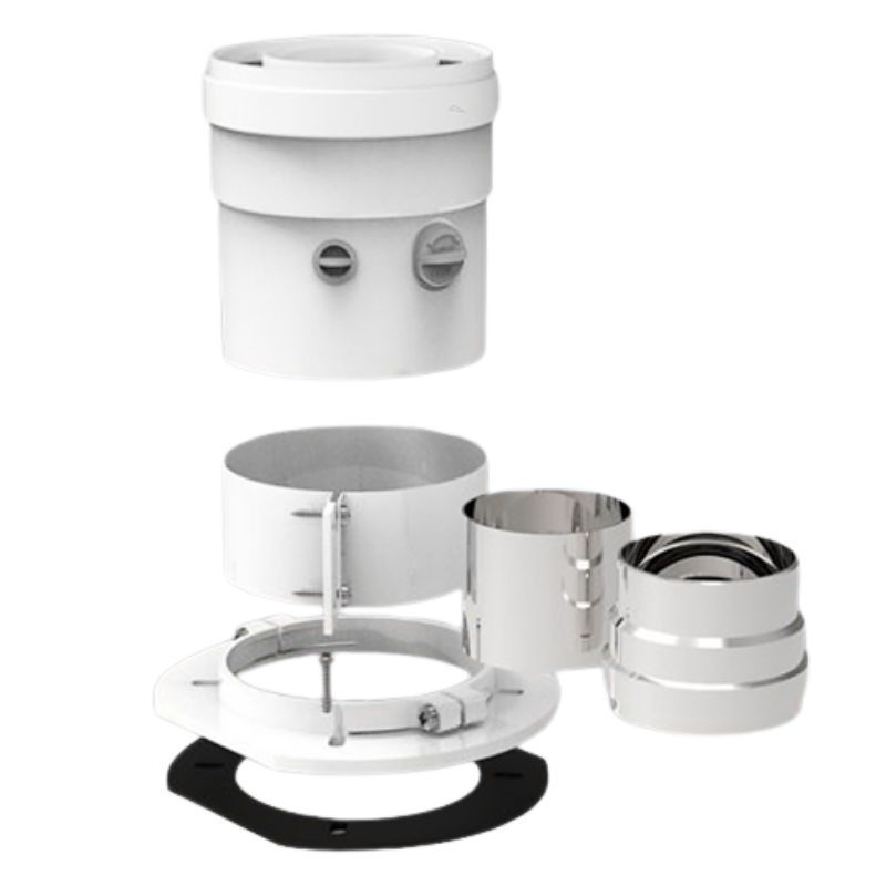 Raccordement vertical coaxial de conduit de fumée (Ø60/Ø100) avec orifice d'échantillonnage en aluminium et aluminium laqué compatible avec les chaudiéres gaz, avec faibles émissions de NOx / Étanchéité à l'air. Aluminium / PVC