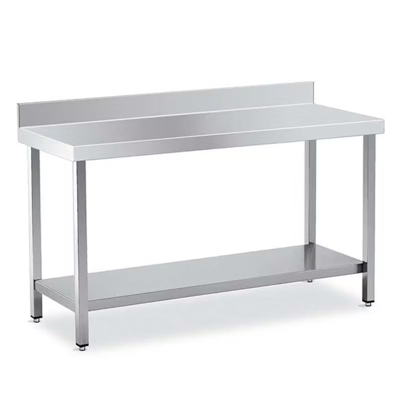 Table en acier inoxydable conçue dans le respect de la réglementation en vigueur en matière de manipulation des aliments.