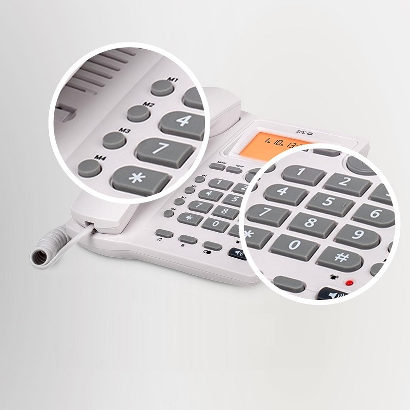 Il peut être utilisé comme téléphone fixe de bureau ou fixé au mur en utilisant les deux logements à vis à l'arrière de l'appareil, SPC OFFICE ID 2 fonctionnera pour émettre et recevoir des appels en le connectant simplement au réseau téléphonique et sans avoir besoin de piles.