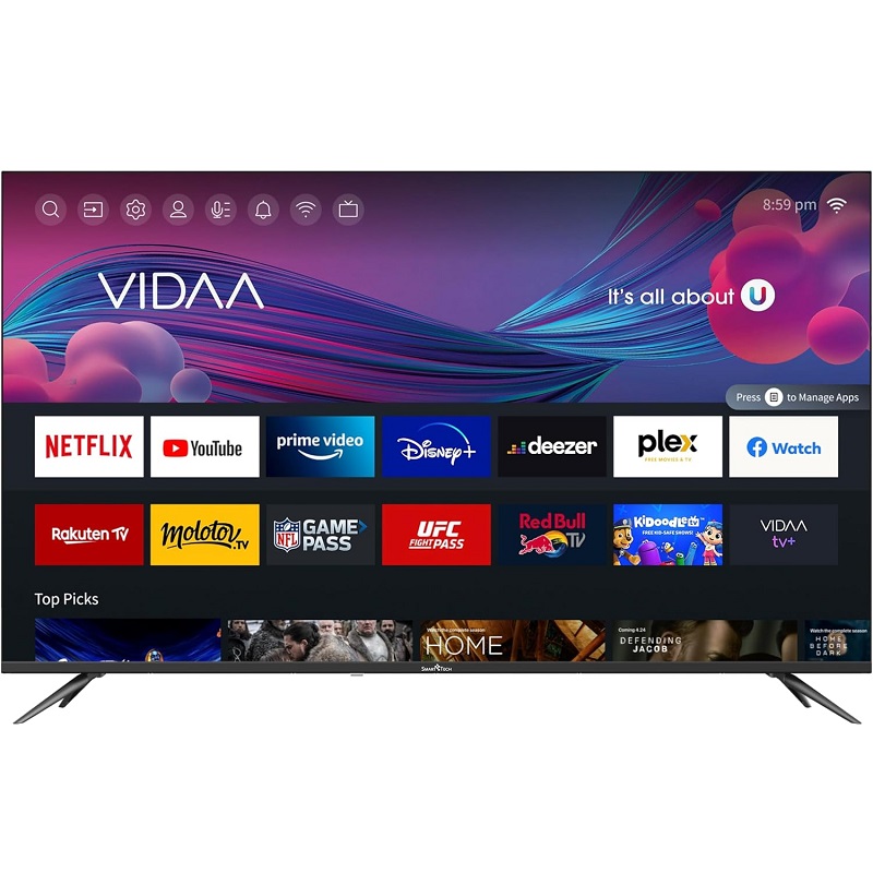 Son système audio, composé de deux haut-parleurs de 10 W et de la technologie Dolby Audio, offre un son clair et puissant qui sublime la qualité d'image. Équipé du système d'exploitation VIDAA 4.1, ce téléviseur vous permet d'accéder rapidement à des applications populaires comme Netflix, Prime Video, Disney+ et Spotify, pour une expérience de divertissement complète.