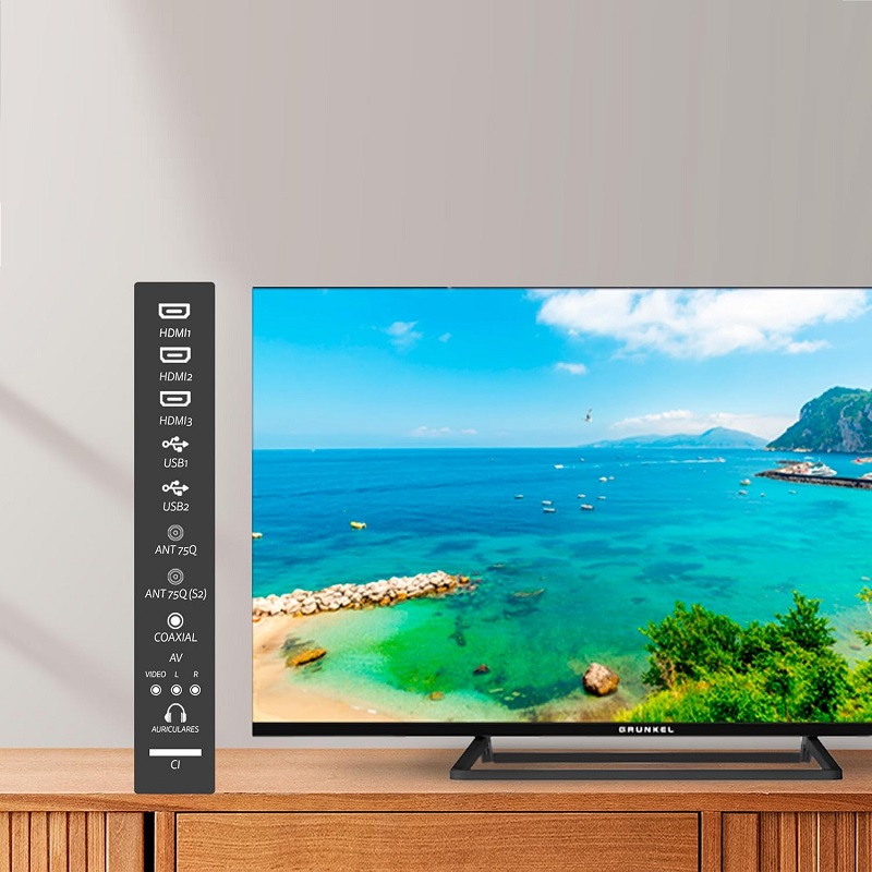 Le téléviseur Grunkel QLED-4026VD est une Smart TV de 40 pouces (101 cm) qui utilise la technologie Quantum Dot (QLED) pour offrir une meilleure reproduction des couleurs par rapport aux dalles LED classiques. Le téléviseur GRUNKEL QLED-4026VD de 40 pouces est doté de la technologie Quantum LED, offrant une expérience visuelle immersive grâce à sa résolution Full HD (1920 x 1080 px) et ses angles de vision de 178°, idéal pour profiter pleinement de vos programmes préférés depuis n'importe quel endroit de la pièce
