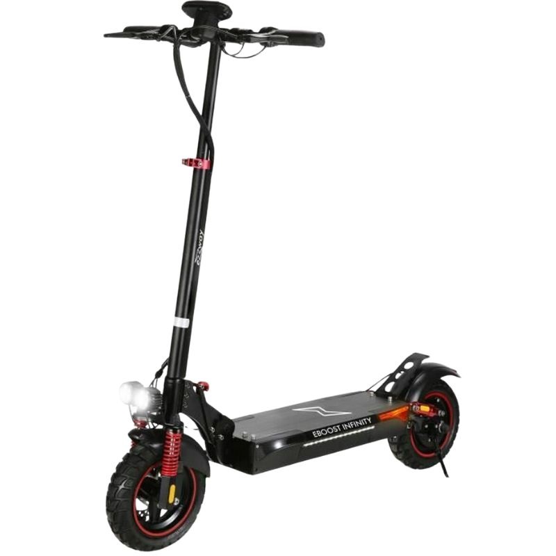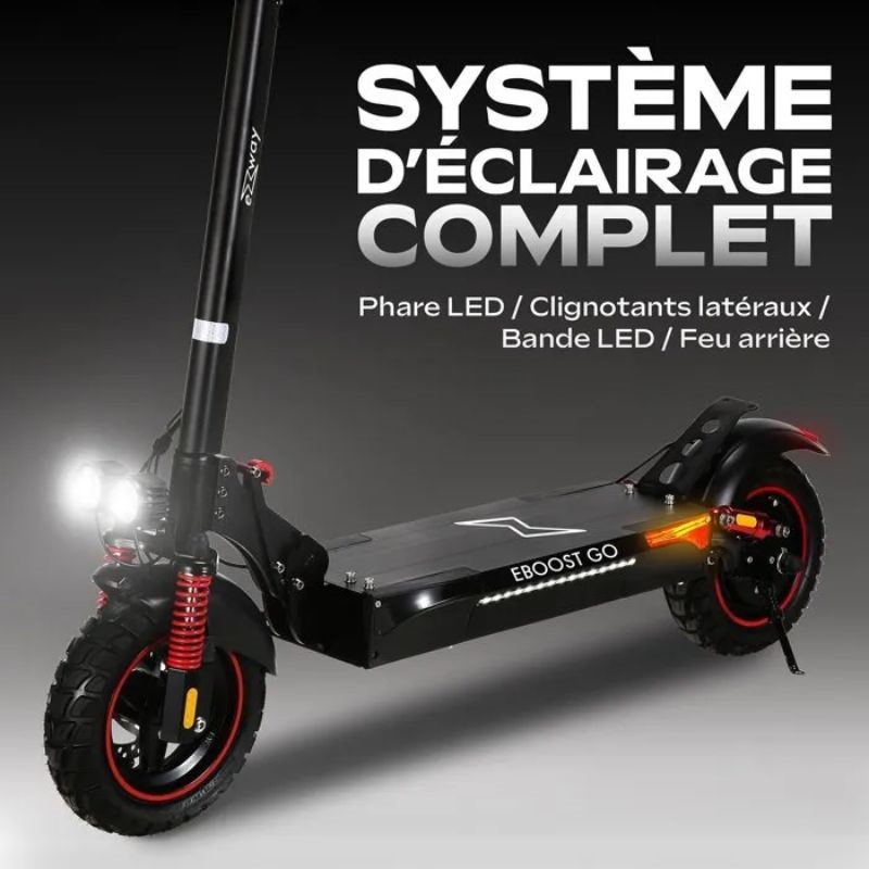 La trottinette électrique tout-terrain EBOOST INFINITY de la marque reconnue EZWAY est une solution avancée de mobilité personnelle alliant puissance, autonomie et polyvalence, ce modèle est équipé d’un moteur robuste de 800 W et d’un système électrique de 48 V, conçu pour affronter efficacement divers terrains et offrir une réponse agile en montée comme sur surfaces irrégulières, la structure du trottinette est pliable, facilitant son transport et son rangement en milieu urbain ou lors de courts déplacements, sa batterie permet d’atteindre une autonomie proche de 90 km, un atout majeur dans ce secteur qui étend significativement son usage sans recharges fréquentes, il intègre également des éléments de sécurité essentiels pour la conduite extérieure, tels que feu stop et clignotants, améliorant visibilité et communication avec les autres usagers, aspect crucial notamment en zones de trafic ou faible luminosité