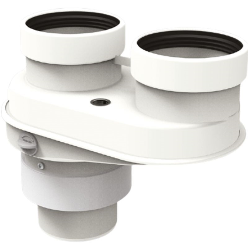 Adaptateur coaxial pour sortie de chaudière à double flux, compatible avec les chaudières Acv et Intergas, en polypropylène et acier laqué.