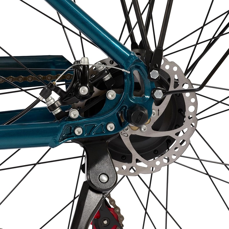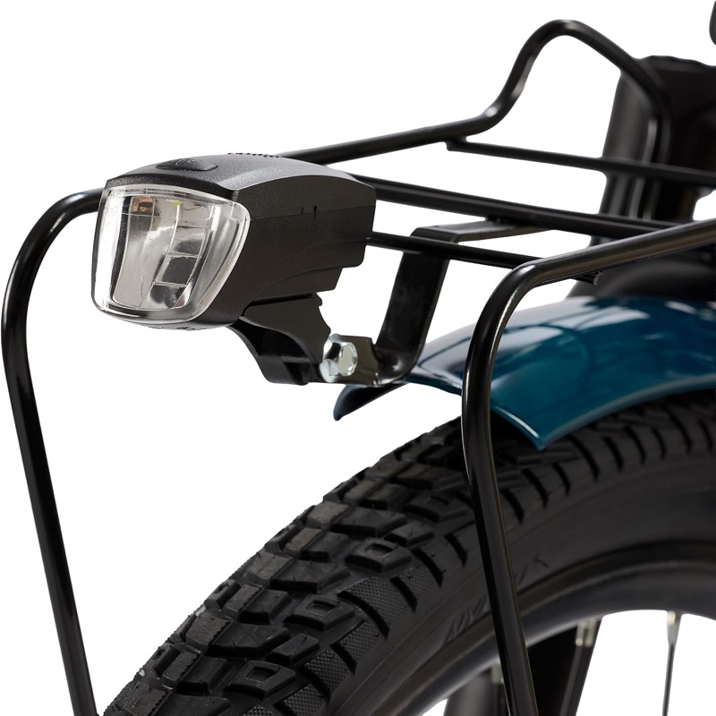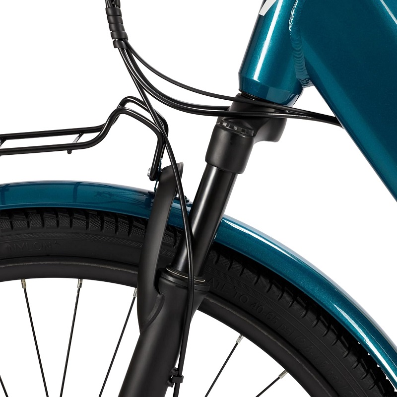 Le vélo électrique à pédalage assisté adapté à la ville, grâce aux pneus de 28" x 1,75", aux lumières LED et aux freins à disque mécaniques avant et arrière