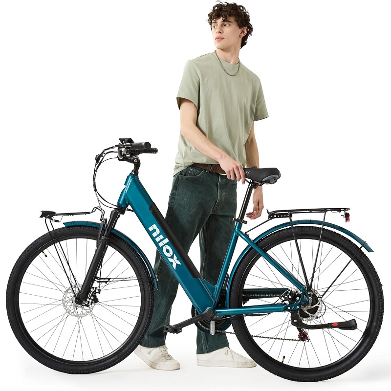 Le Nilox J7 est équipé d'un dérailleur Shimano à 6 vitesses et d'un moteur 36 V/250 W - 55 Nm pour atteindre une vitesse maximale de 25 km/h. Vélo électrique moderne, le vélo de ville J7 se caractérise par un design audacieux et moderne, comme les lumières LED puissantes et l'écran LCD à 5 niveaux