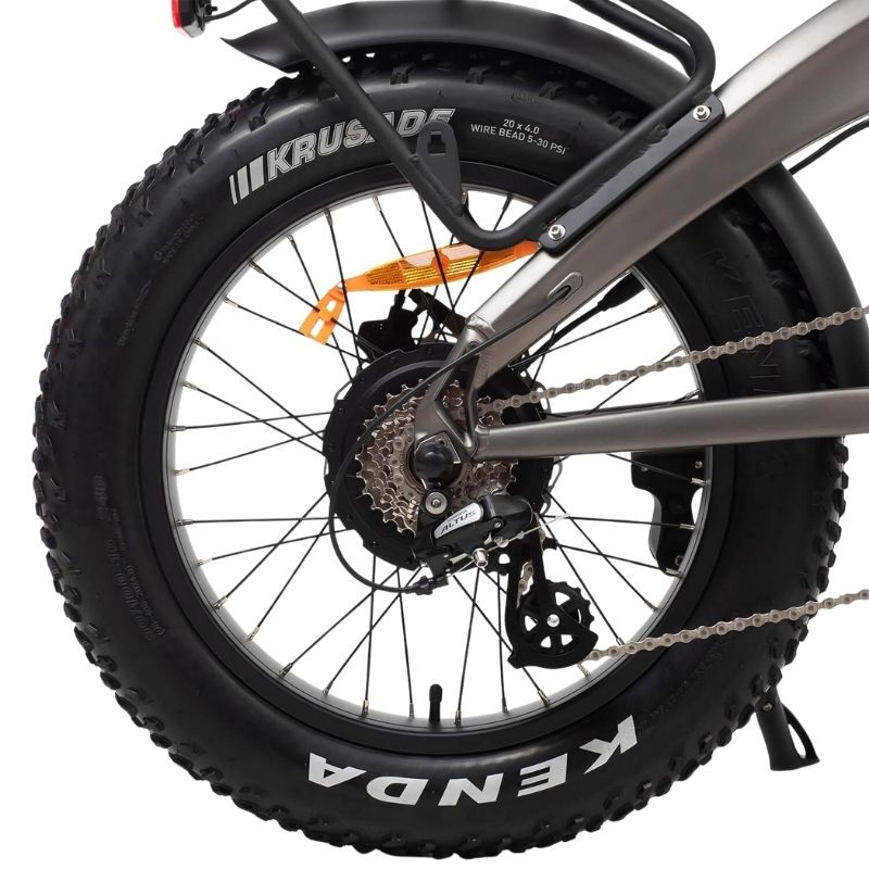 Il est équipé de roues de 20 pouces aux deux essieux, idéales pour une conduite stable et confortable en milieu urbain, permettant des manœuvres agiles et un équilibre optimal. Le moteur électrique de 250 W de puissance permet une vitesse maximale de 25 km/h, adaptée aux déplacements rapides et sûrs en ville, et la batterie de 48 V et 15000 mAh offre une autonomie d’environ 60 km par charge, assurant une bonne durée pour les trajets quotidiens sans recharges fréquentes. De plus, ce vélo supporte un poids maximal de charge de 75 kg, s’adaptant à différents profils d’utilisateurs.