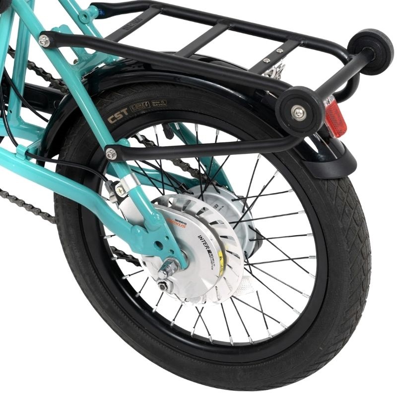 Ses roues avant et arrière mesurent 16 pouces, des dimensions offrant un bon équilibre entre maniabilité et stabilité, idéales pour circuler sur routes et chemins pavés. Le vélo permet une distance maximale par charge allant jusqu’à 45 km, ce qui le rend adapté aux trajets quotidiens sans recharges fréquentes, favorisant un usage durable et économique. De plus, il est conçu pour être compatible avec les prises standard européennes (Prise EU), facilitant sa recharge dans tout logement ou lieu public équipé.