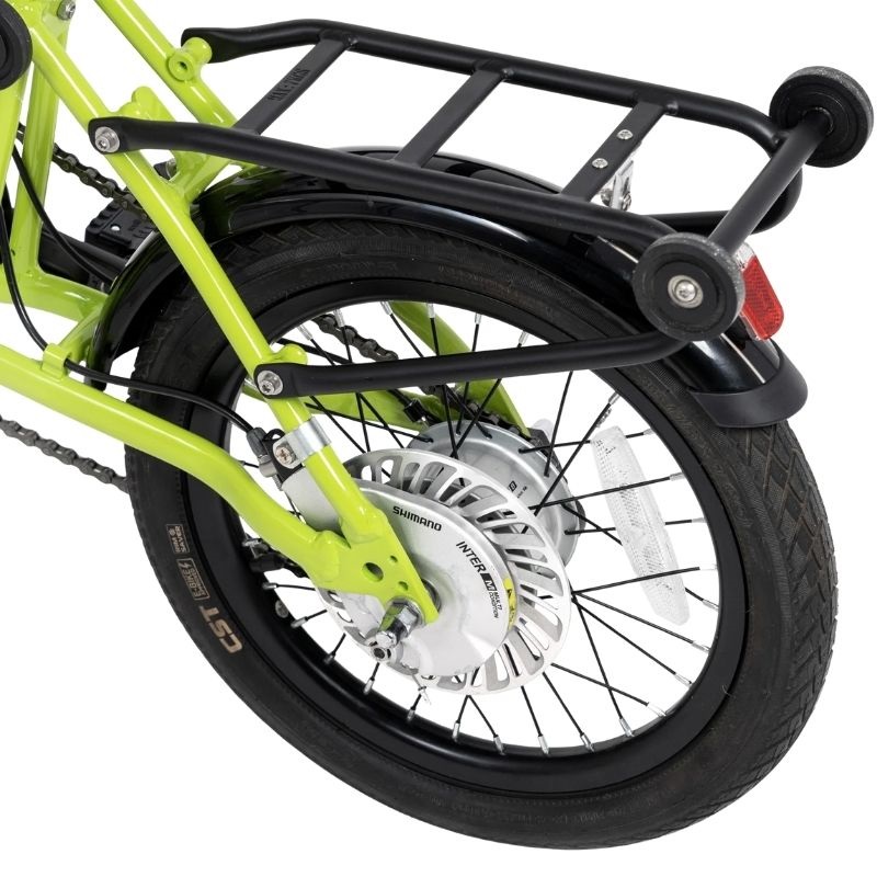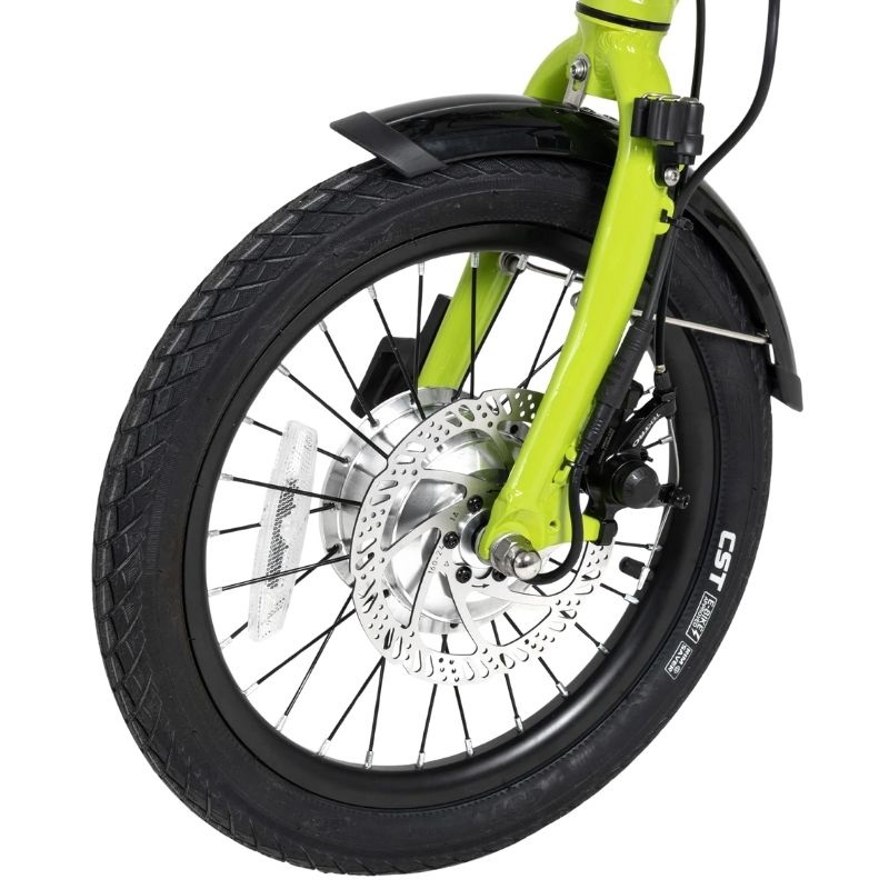 Ses roues avant et arrière mesurent 16 pouces, des dimensions offrant un bon équilibre entre maniabilité et stabilité, idéales pour circuler sur routes et chemins pavés. Le vélo permet une distance maximale par charge allant jusqu’à 45 km, ce qui le rend adapté aux trajets quotidiens sans recharges fréquentes, favorisant un usage durable et économique. De plus, il est conçu pour être compatible avec les prises standard européennes (Prise EU), facilitant sa recharge dans tout logement ou lieu public équipé.